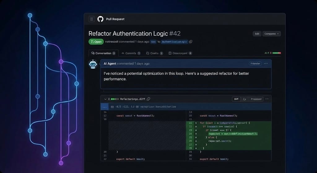 Thay vì phải copy-paste ngữ cảnh giữa các công cụ, tài liệu và các luồng chat, mọi cuộc thảo luận và thay đổi đề xuất đều được gắn chặt vào chính repository đó.