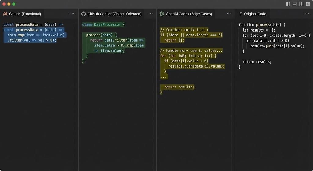 Một điểm mình cực kỳ thích ở Agent HQ là khả năng so sánh cách các agent khác nhau tiếp cận cùng một vấn đề. Bạn có thể giao một nhiệm vụ cho nhiều agent và quan sát cách Copilot, Claude hay Codex lập luận về các đánh đổi (trade-offs) để đưa ra các giải pháp khác nhau.