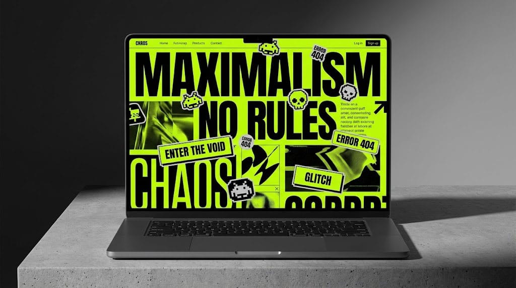 Đừng hiểu lầm. Maximalism không có nghĩa là bạn ném tất cả mọi thứ lên màn hình một cách vô tội vạ. Với tư cách là người làm nghề, tôi định nghĩa Maximalism năm 2026 là Neo-Brutalism kết hợp với Digital Kitsch.