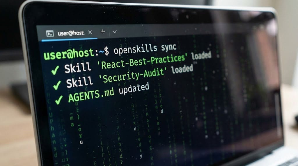 Thay vì copy-paste file .md vào từng dự án (cách làm thủ công rất dễ lỗi thời), openskills tạo ra một thư mục Global. Khi bạn gõ lệnh openskills sync, nó sẽ tự động cập nhật file AGENTS.md trong dự án hiện tại của bạn. Agent của bạn chỉ cần đọc file này là "thông minh" lên ngay lập tức.