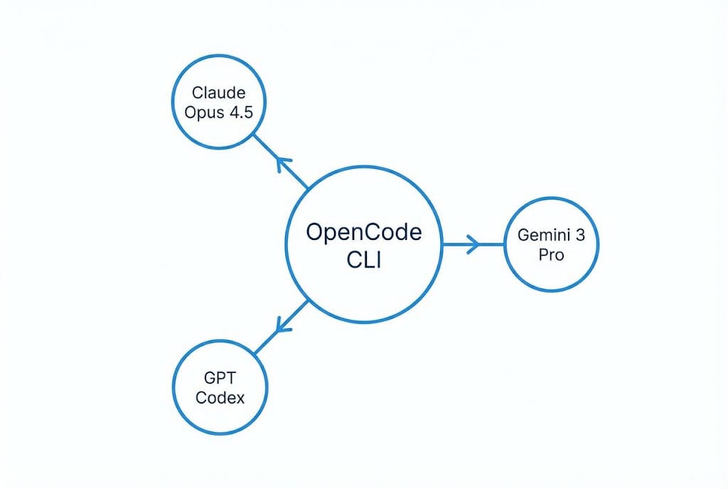 Khác với Claude Code (bị khóa chặt vào hệ sinh thái Anthropic), OpenCode giống như một "trình duyệt" cho các mô hình ngôn ngữ lớn (LLM). Nó cho phép bạn kết nối với bất kỳ ai: từ Opus 4.5 mới nhất, Gemini 3 Pro, cho đến các model "cây nhà lá vườn" chạy local.