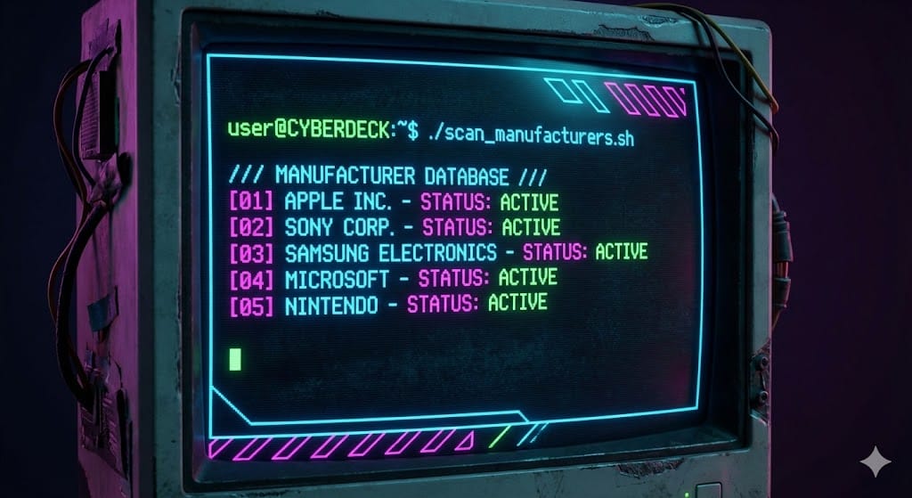 sudo. - Nhận diện thiết bị thông minh: Tự động tra cứu OUI để hiển thị tên nhà sản xuất thiết bị (ví dụ: Apple, Samsung, Sony).