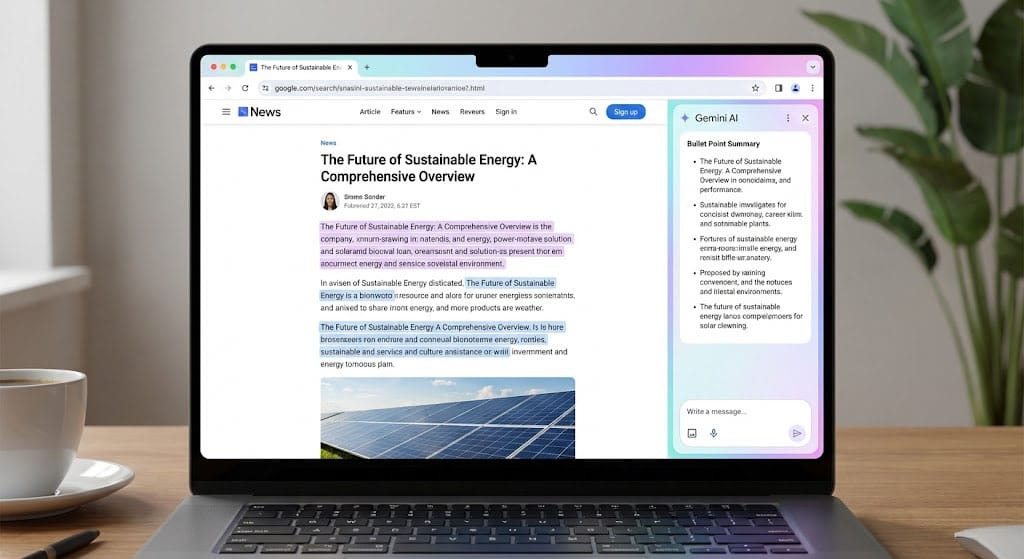 Google tích hợp thẳng Gemini 3 vào thanh sidebar. Nó hiểu ngay bạn đang đọc gì, đang làm gì - không cần giải thích dài dòng.